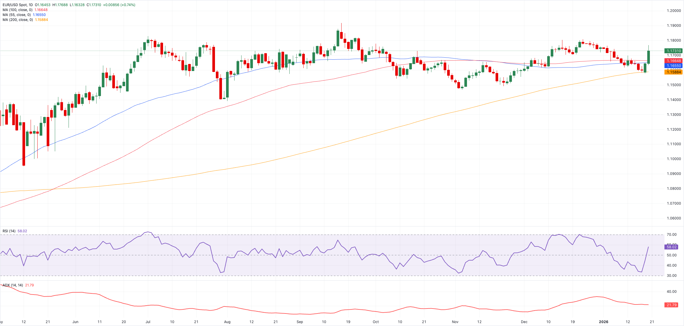 تمكن زوج يورو/دولار EUR/USD من تمديد ارتداده من القيعان الأخيرة واستعاد حاجز 1.1700 وما فوقه، مما يفتح الباب لزيارة محتملة للقمة في ديسمبر/كانون الأول عند 1.1807 (24 ديسمبر)، قد يؤدي الكسر فوق الأخيرة إلى اختبار السقف في 2025 عند 1.1918 (17 سبتمبر) للظهور مرة أخرى على الأفق قبل الحاجز 1.2000.