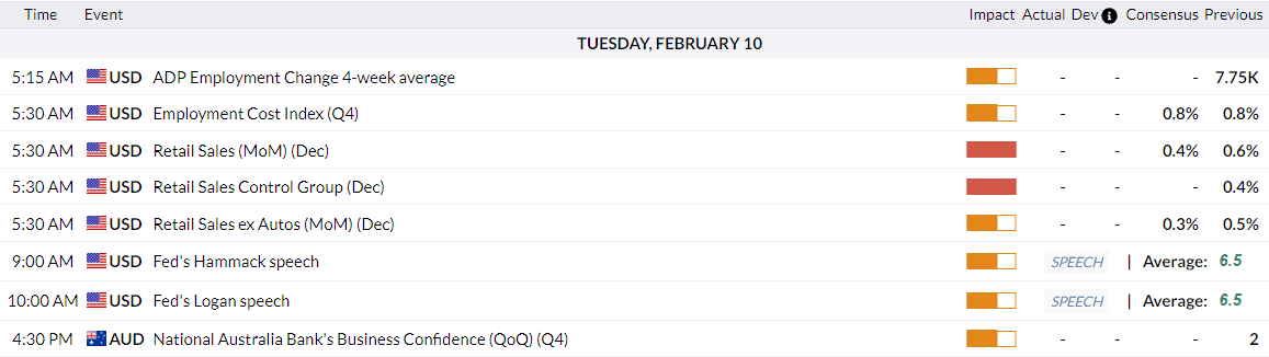 فيما يتعلق بالمستقبل، يوم الثلاثاء سيشهد صدور مؤشر ثقة المستهلك من ويستباك لشهر فبراير في الساعة 16:30 بتوقيت جرينتش، بالإضافة إلى استطلاع ثقة الأعمال من NAB لشهر يناير، مما سيوفر مزيدًا من التفاصيل حول الخلفية المحلية بعد تحول بنك الاحتياطي الأسترالي نحو التشديد، والأسواق تسعر احتمال 80% لرفع سعر الفائدة مرة أخرى في مايو، بينما تكون الأجندة الأمريكية خفيفة نسبيًا قبل تقرير الوظائف غير الزراعية (NFP) لشهر يناير المقرر يوم الأربعاء، على الرغم من وجود عدة خطابات من محافظي الاحتياطي الفيدرالي على مدار الأسبوع والتي قد تضخ بعض التقلبات إذا تم التراجع عن توقعات خفض معدلات الفائدة