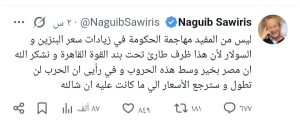 وأضاف ساويرس عبر حسابه على “إكس” أن الظروف الحالية تعتبر من القوة القاهرة، معبرًا عن شكره لله على أن مصر لا تزال بخير وسط التحديات العالمية، وأعرب عن تفاؤله بأن الحرب لن تستمر طويلًا وأن الأسعار ستعود إلى مستوياتها السابقة.