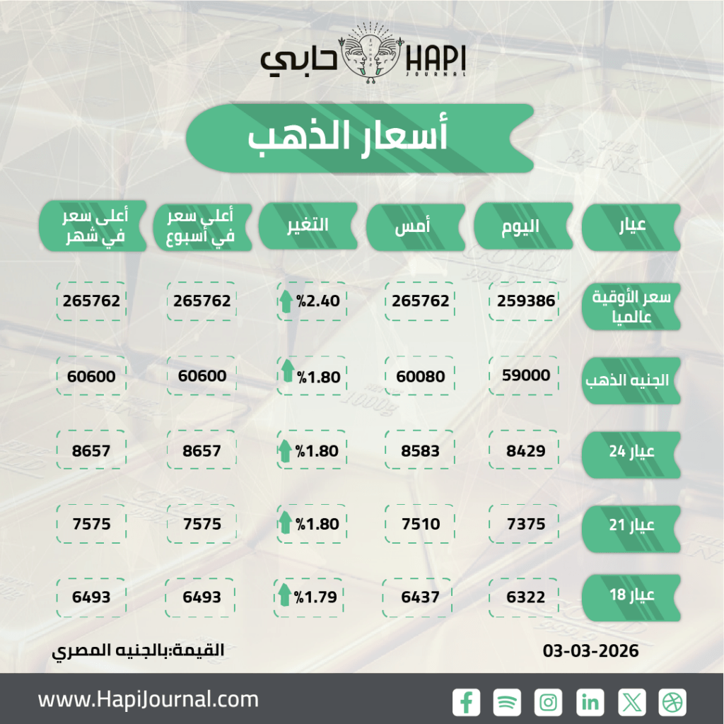 وأشار إمبابي إلى أن الانخفاض العالمي في أسعار الذهب جاء نتيجة لقوة الدولار التي تعززت بالتطورات المرتبطة بالحرب الأمريكية الإسرائيلية ضد إيران، إلا أن ارتفاع سعر صرف الدولار في السوق المحلية ليتجاوز مستوى 50 جنيهًا قد حدّ من خسائر المعدن الأصفر محليًا.