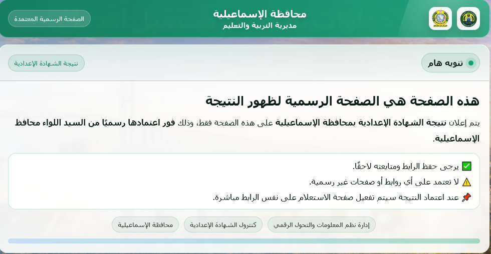 رابط الاستعلام عن نتيجة الشهادة الإعدادية 2026 بالإسماعيلية