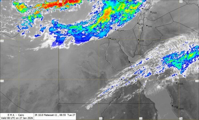 كما توقعت الهيئة وجود فرصة لسقوط أمطار متفاوتة الشدة على مناطق من شمال البلاد مع انخفاض طفيف في درجات الحرارة على أغلب الأنحاء حيث قد تكون الأمطار متوسطة ورعدية أحيانًا على السواحل الشمالية الغربية وشمال الوجه البحري على فترات متقطعة.