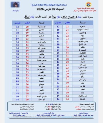 درجات الحرارة اليوم السبت 7 مارس 2026