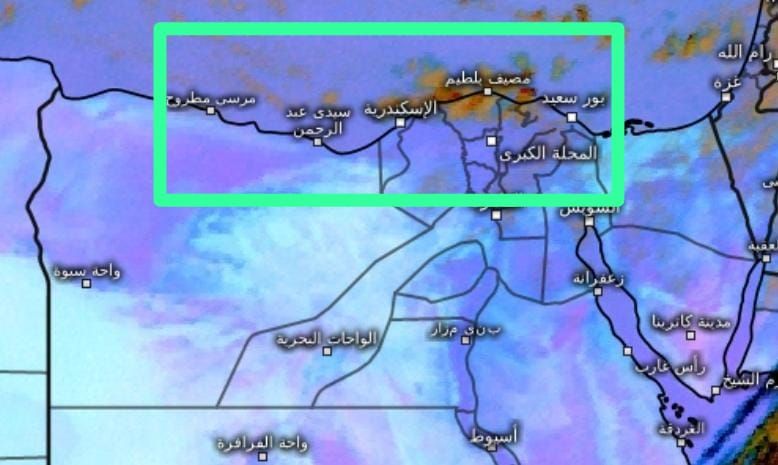وتتوقع الهيئة سقوط أمطار متوسطة قد تكون غزيرة ورعدية أحيانًا على مناطق من السواحل الشمالية وشمال الوجه البحري على فترات متقطعة.