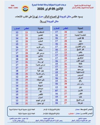 درجات الحرارة اليوم الاثنين 9 فبراير 2026