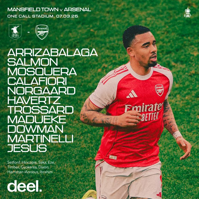 أعلن ميكيل آرتيتا، المدير الفني لفريق آرسنال الإنجليزي، عن التشكيل الرسمي الذي سيخوض به مباراة اليوم أمام مانسفيلد تاون في الثانية والربع ظهرًا، ضمن منافسات الدور الخامس من بطولة كأس الاتحاد الإنجليزي، حيث يسعى الفريق اللندني لتحقيق الفوز وتعزيز آماله في البطولة.