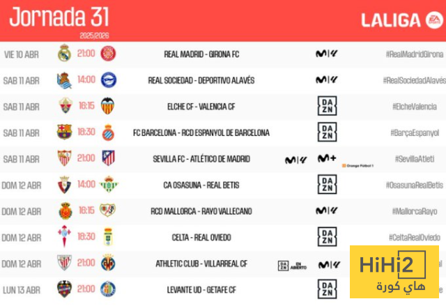 في إطار التحضيرات لموسم 2025-2026، أعلنت رابطة الدوري الإسباني عن مواعيد مباريات الجولة 31، حيث سيلتقي برشلونة مع إسبانيول يوم السبت 11 أبريل في تمام الساعة 8:30 صباحًا بتوقيت السعودية، كما سيواجه ريال مدريد فريق جيرونا يوم الجمعة 10 أبريل في الساعة الحادية عشرة مساءً بتوقيت السعودية