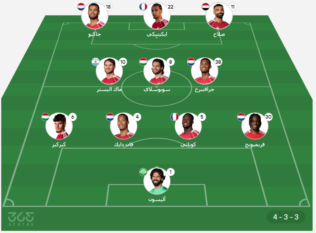 • خط الدفاع: جيريمي فريمبونج، إبراهيما كوناتي، فيرجيل فان دايك، ميلوس كيركيز