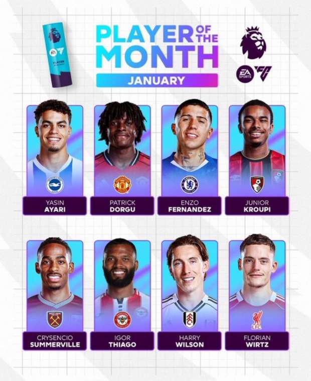 أعلنت رابطة الدوري الإنجليزي الممتاز عن قائمة اللاعبين الذين تم ترشيحهم لجائزة أفضل لاعب في شهر يناير الماضي حيث تصدرها الألماني فلوريان فيرتز لاعب نادي ليفربول مما يعكس الأداء المتميز الذي قدمه خلال هذه الفترة