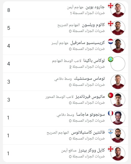 وجاءت قائمة أفضل هدافي وست هام على النحو التالي: