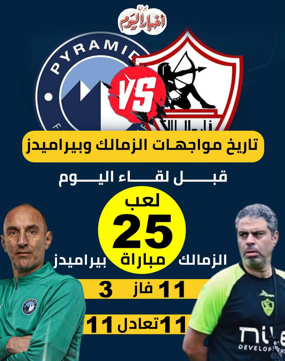 قبل مواجهة اليوم، التقى الفريقان في 25 مباراة بجميع البطولات حيث حقق الزمالك 12 انتصارًا بينما فاز بيراميدز في 3 مباريات وتعادل الفريقان في 10 مواجهات منها 4 مباريات حسمت بركلات الترجيح حيث تفوق الزمالك في 3 منها بينما فاز بيراميدز مرة واحدة.